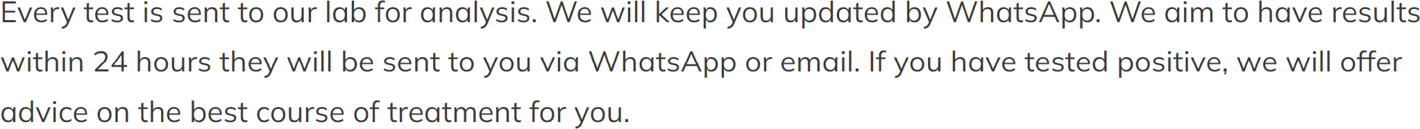 Wait 24 hours* for your accurate results which will be sent via Email or WhatsApp