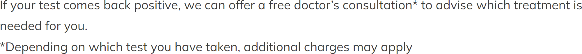 Unlike many other providers, we offer a free telephone consultation with a GP for any positive tests. This provides you with full effective care from start to finish.